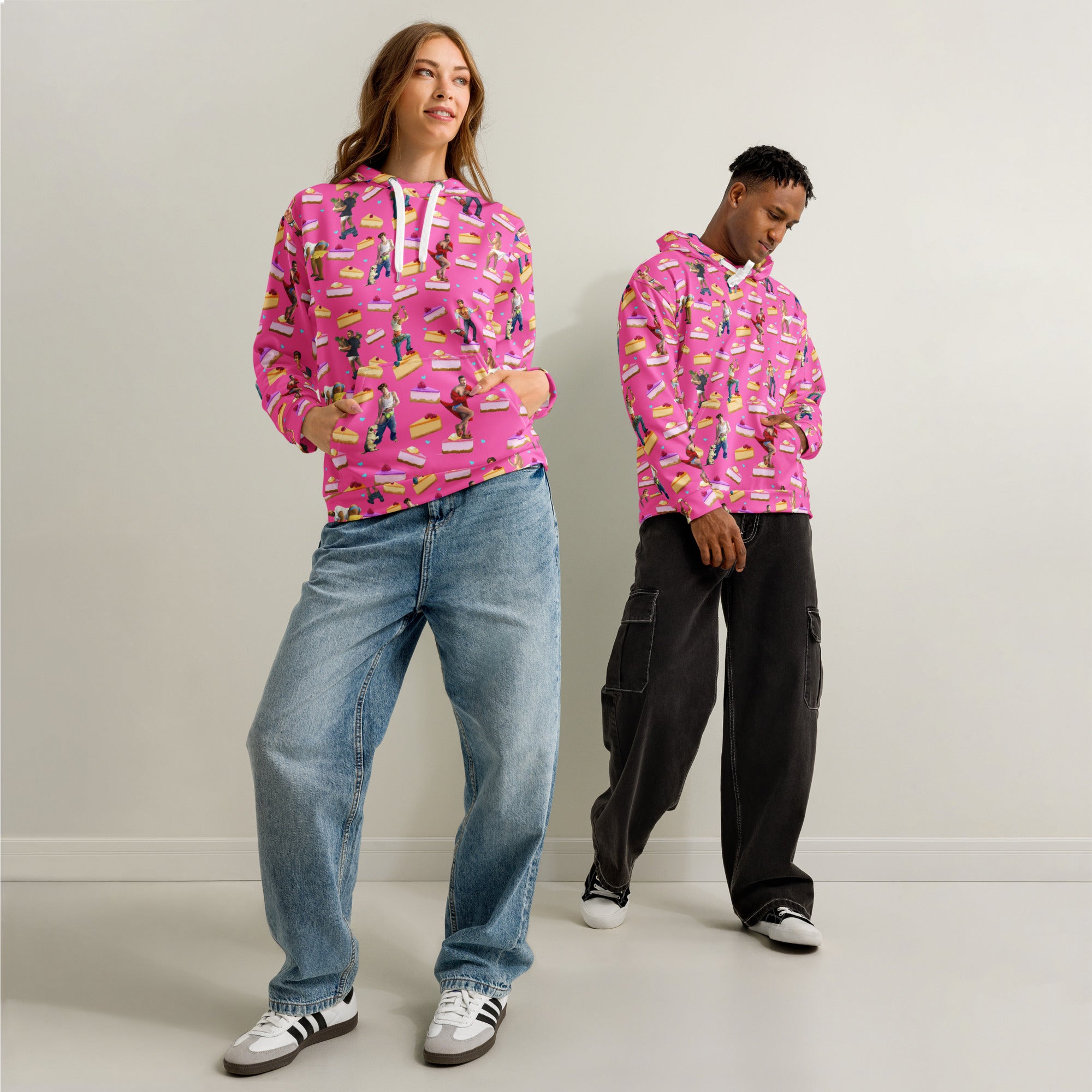 Wrap yourself in sweetness with the Cheesecake Boys Hoodie, featuring Paul Richmond’s beloved pin-up series in a bold, all-over print! This ultra-playful design pairs irresistible cheesecake slices with flirty, mischievous Cheesecake Boys striking their iconic poses - bringing retro pin-up charm to your comfiest wardrobe staple.